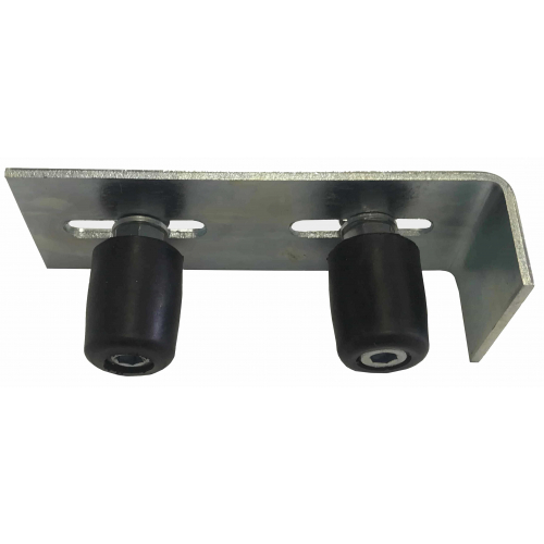 Шина и два прорезиненных ролика. Шина упругая, не склонна к разгибу. Ролики мягкие, что обеспечивает мягкое взаимодействие лакокрасочного покрытия верхней трубы откатных ворот с поверхностью роликов. Но все же мы рекомендуем установку алюминиевого уголка для создания рабочей зоны для поддерживающих роликов.